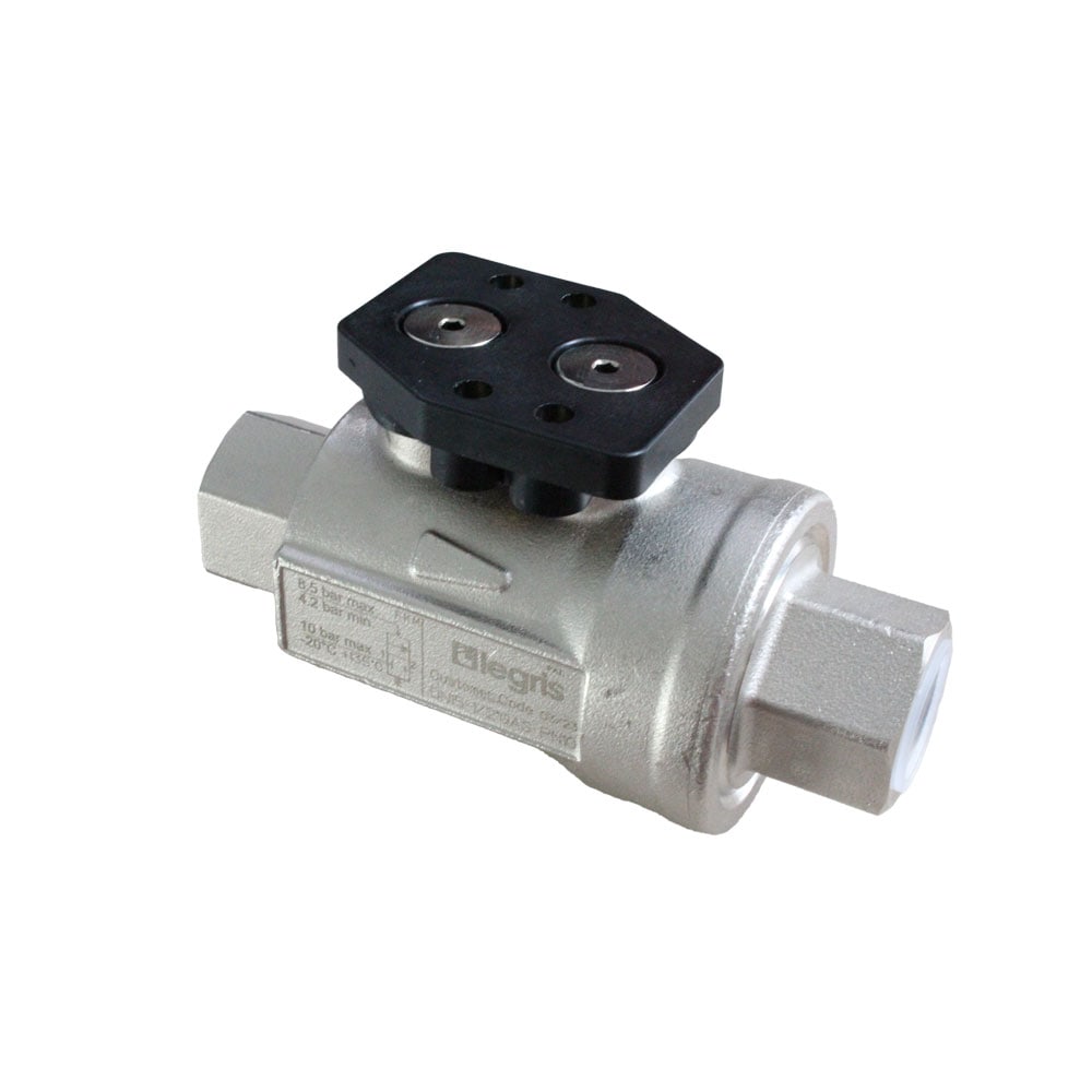 The Parker Legris axial valve features a pneumatic actuator and can be controlled pneumatically or electro-pneumatically (with a NAMUR spool valve or solenoid valve) for integration into automated systems. It is available with or without detection.
